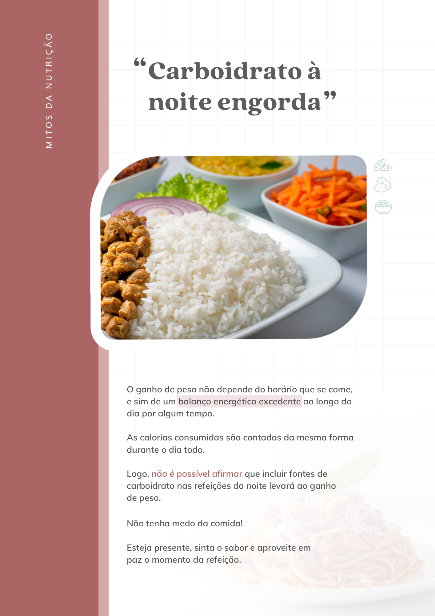 villa / SAÚDE, EMAGRECIMENTO E FITNESS / 💥 CURSOS MED / Nutri Nova Era - Giovanna Sousa / Material / 7. Mitos alimentares / 1. Carboidrato à noite engorda / Materiais