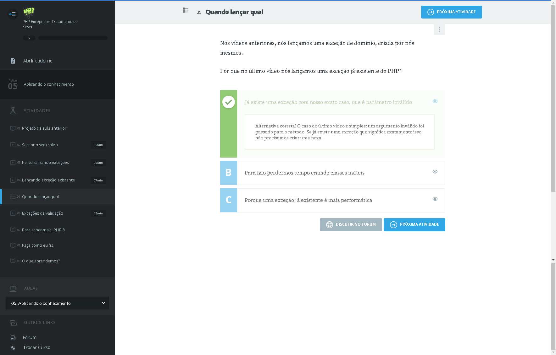 villa / [PACK] ALURA / Alura - Formação PHP / 06. PHP Exceptions - Tratamento de erros / 05. Aplicando o conhecimento / Exercícios