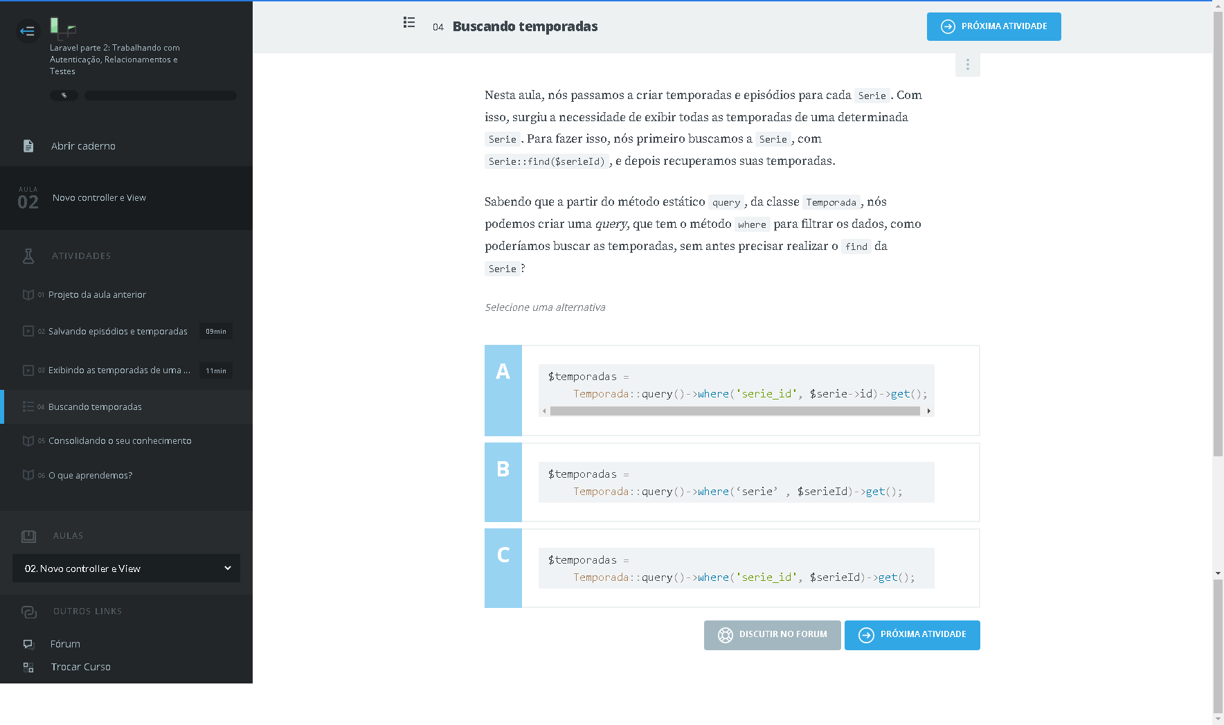 villa / [PACK] ALURA / Alura - Formação PHP / 12. Laravel parte 2 - Trabalhando com Autenticação, Relacionamentos e Testes / 02. Novo controller e View / Exercícios